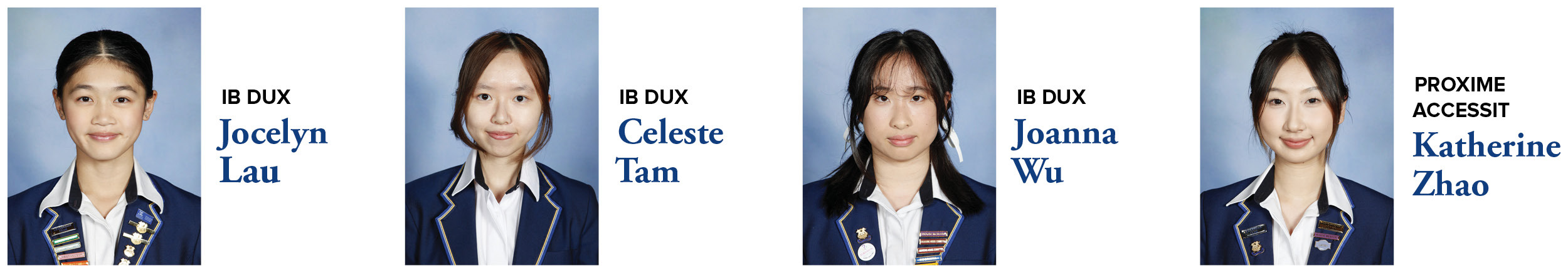 Our IB Duces, Jocelyn Lau, Celeste Tam and Joanna Wu, all achieved perfect IB scores of 45 and ATARs of 99.95. Our IB Proxime Accessit is Katherine Zhao, who also scored 45 in IB, with an ATAR equivalent of 99.9.