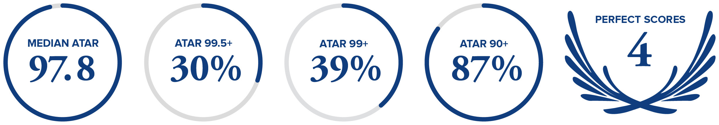 In terms of ATAR outcomes, 30 per cent of our Year 12 IB students achieved an ATAR of 99.5 or above. A remarkable 39 per cent achieved an ATAR of 99 or above, while 87 per cent achieved an ATAR of 90 or above. The median ATAR for 2025 is 97.8.